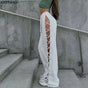 Fusiona comodidad y sensualidad con estos pantalones de cintura alta y aberturas laterales ajustables. Perfectos para destacar con un estilo streetwear único y atrevido en cualquier ocasión.