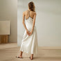 Descubre el lujo y la comodidad en este vestido de dormir de seda gamuza, diseñado para realzar tus momentos de relajación con un estilo minimalista y elegante.