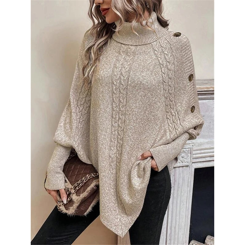 Este suéter está diseñado especialmente para brindarte calidez sin sacrificar tu estilo. Su alto cuello y tejido de alta calidad te mantendrán abrigada incluso en las mañanas más frescas, asegurando que cada día te sientas cómoda y elegante.