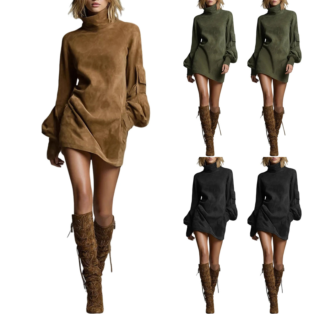 Vestido Mini Retro de Suede con Cuello Alto - LÚVORA